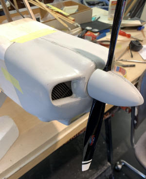 trial fit of the new cowl and spinner (engine is completely enclosed)