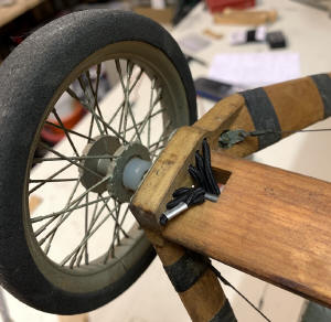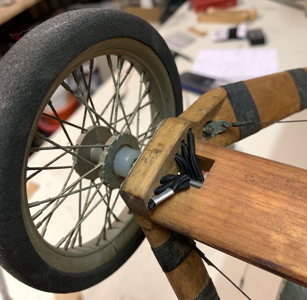 old photo of the Curtiss Jenny with static prop At first, it was not my intention to fly the model as it had some issues (like a few broken brass fittings), but towards the end of 2025, I started changing my mind so I investigated the feasibility to make her fly again. the assembled Jenny took quite some space in my workshop during the restoration work The previous owner had substituted a slightly larger engine, a brand new OS MAX FSA 81. I don’t know which engine was installed previously, but it could well have been an OS MAX FS70 Surpass as it is about the only engine with the same mounting dimensions. The FSA 81 needed some disassembly and cleaning as it had gummed up during storage. I received only a scale static balsa propeller with the model, so I installed a suitable flying propeller.new OS FSA 81 installed with a scale looking 15-6 wooden flying propeller I replaced the old fuel tank, installed new fuel tubing and checked all the controls and servos. Incidently, fuelling is done through the cap on top of the radiator. Another unique feature is the fact that the sticks and pedals in both cockpits follow the movement of the associated control surfaces. These control surfaces are actuated by cables, exactly like the full size. The power switch is activated with the throttle lever (from either cockpit). A new 2.4 GHz receiver with gyro stabilization was installed, together with a new airborne battery. The landing gear and tail skid have some kind of suspension in the form of rubber bands. These of course needed replacement which I found in a Veritas shop.new rubber bands for main gear suspension I’m waiting for a calm day to put the Jenny into the air again, 43 years after she was built, but I will first do some engine runs at home to make sure everything is fine before flying. I will update this page as soon as I have further news. (*) Proctor Enterprises are still in business at time of writing (Jan 2026) and the kit can still be purchased, see their website.