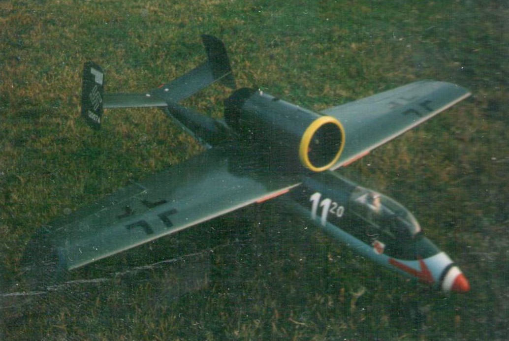 | Midwest Heinkel 162 with a similar Axiflo RK-40 Ducted Fan unit as above and an Irvine 40 front carb engine (the model did fly but was not a spectacular performer) |