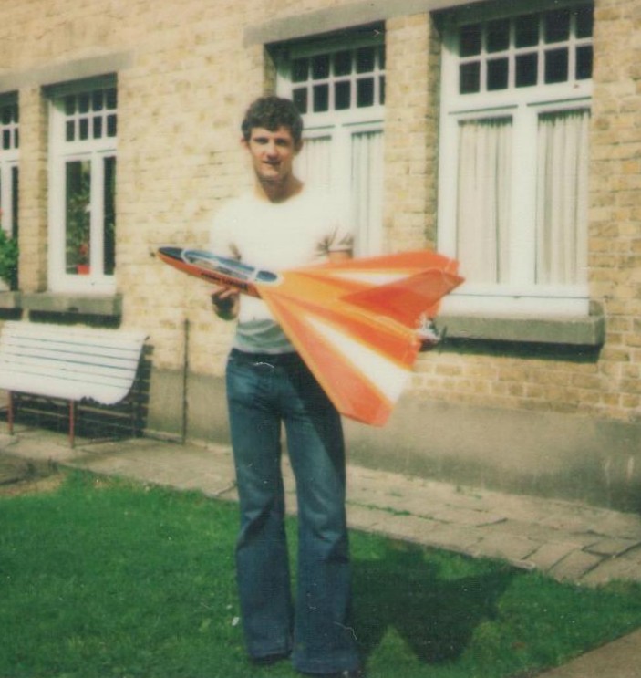 | I build this Robbe Zlin 526 Trener in 1977 from a similar Robbe kit. Nearly 50 years later, I built a new version as can be read here. The transmitter I'm holding is a Mac Gregor Digimac, which I still have in my possession, read here. |