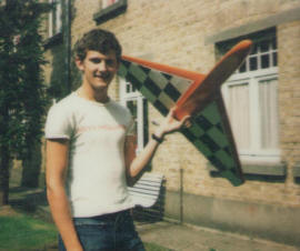 | A 3/4 size Kwik Fly (built by uncle Jack) in the background and my first own design trainer in the foreground (1977) with a FOX 25 RC engine (which was used in several models) |