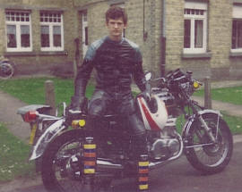 ![]() my Suzuki GT550 motorbike looked like this after removal of the Rickmann fairing (the helmet I'm carrying on the photo was a rare JEB's Clay Regazzoni replica which unfortunately was lost) |