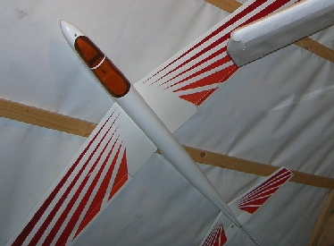 | More models suspended in my attic: R/C Kits F-106 Delta Dart, EZ Topline 50, MK Arrow 40, Robbe LO-100, Thunder Tiger Stick, Graupner Eindecker and my old red & white F-15 trainer. |