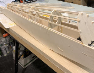 construction drawings in progress (looks very chaotic and needs a lot of clean up work) first balsa parts being CNC routed (wing ribs) all wood parts are now CNC cut, so construction work will be following shortly