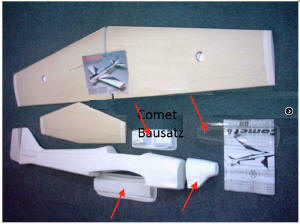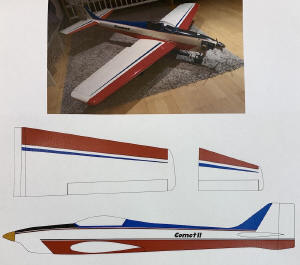 I've always liked the looks of the Topp Comet II. Ever since I saw the pictures in the catalog in the mid eighties, I was fond of its elegant lines. I recently had the opportunity to buy a second hand kit. Because it was not complete, I first contacted Topp Rippin to buy the 4 missing parts: clear canopy, cockpit deck, engine cowling and belly pan.I got a friendly reply it was no problem to buy these parts, so I decided to buy the second hand kit. As it turned out, the abachi veneered foam wings were of the long type intended for the twin version. Apparantly, many Comets were delivered with these long wings. I quickly decided to make new built up wings, not only to make them the correct span, but also in an effort to save weight. And I must admit, I like designing and making my own version of a kit (as I had already done with the Aramis, the Sundancer and the Wild 7*90) I didn't have any plan, just a poor photo of the plan found somewhere on the internet, but after all, it was not really necessary... This build is scheduled after the completion of the Citabria and Wild 7*90 builds.