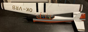 screenshots from film are the only photographs of the original OK-VRB airframe The model is almost exclusively finished in Oracover. Only the cowl and canopy frame are painted in matching colours. Graphics are home made, either Oracover or Orastick cut on a Roland Stika or in decal form. model covered in Oracover...