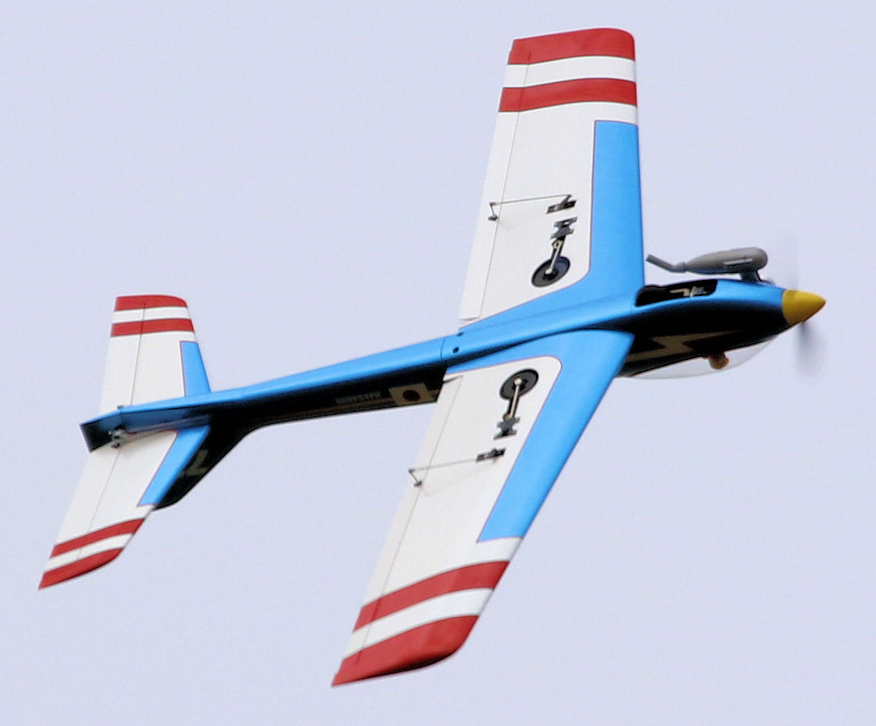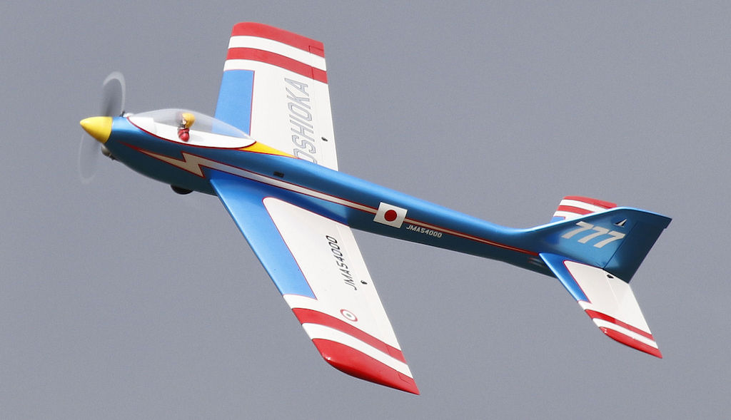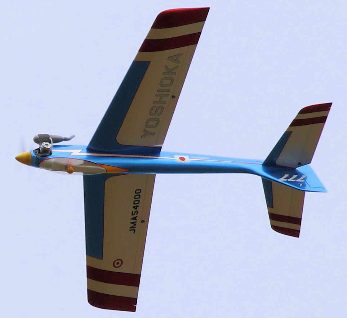 I built this model from the very nice kit made available by Ratzo Modellbau in Germany. It is a tribute to Mr. Yoshioka from Japan who won the F3A World Championships in 1973 with his Blue Angel. That event was held in Gorizia, Italy, the same place where I would win my first F4C Scale World Championships title some 15 years later, so it has a strong symbolic meaning. I duplicated the looks of Mr. Yoshioka's Blue Angel as much as I could and was inspired by the magazine cover below. I especially liked how the blue colour appeared to be metallic on that particular photograph print. looks pretty much as the original from Mr. Yoshioka... The model is powered by an (almost) period correct OS MAX 60 FSR engine. A Kavan 11-7 3/4 chromed nylon propeller is fitted. The yellow spinner is from Du-Bro. Retracts are electrical and are made by Jetcraft. Covering is all Oracover except for the metallic blue. That was a leftover piece from some other manufacturer found at my local hobby shop, Aerobertics. All graphics were cut from Easyplot with a Roland Stika STX-8. super reliable OS MAX 60 FSR for power (a similar engine was used in my P-51B Mustang scale model back in 1984, more details here)
