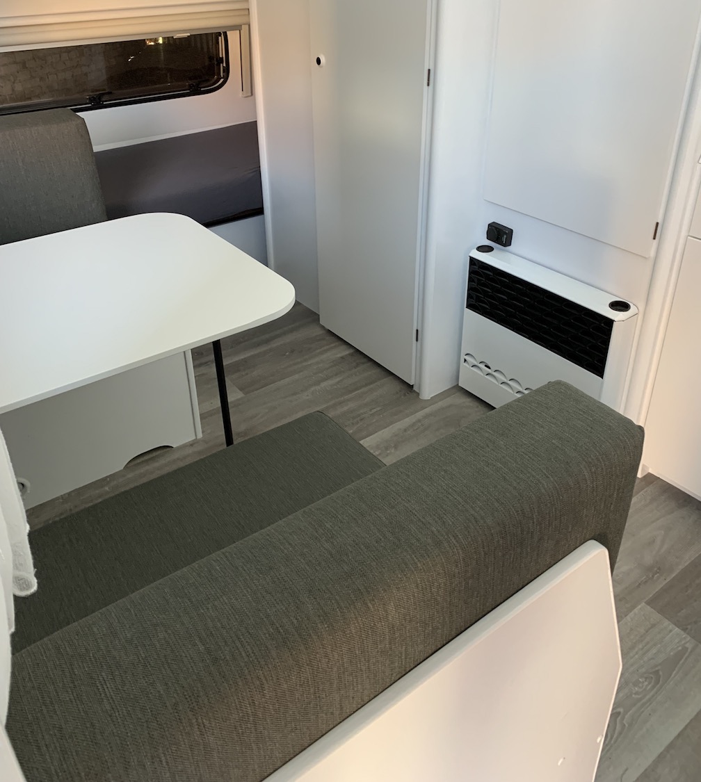 removable parts ready to be painted in the garage I also wanted to repaint the control panels for the fridge and the gas fire and the one for the overhead kitchen lighting. These were in dark brown with golden lettering and I wanted to repaint the m in black with white lettering.old fashioned control panels For this, I also had to remove the kitchen sink and that was probably the hardest job. I damaged one of the gas burners in the process but luckily found a replacement in a German online shop (Weippert). By the way, I replaced a lot of old parts with brand new parts bought from different online shops specialized in caravanning, mostly from The Netherlands (Obelink, De Wit Schijndel and Kampeerwereld). Some hardware was also bought from our local shop: Decuyper in Poperinge.preparation of the control panel for paint (some filler was required) After the necessary bits and pieces were removed, I degreased and washed the interior thoroughly. I masked all the windows and everything else that had to remain unpainted with masking tape. windows masked I used a renovation paint for kitchens (V33) to repaint the complete interior white. I didn’t do the inside of the cabinets as this remains unseen (unless you open the door). It was immediately clear that the interior would be a lot brighter than before.painting in white brightens up the interior At that time, I also decided to install indirect RGB LED lighting (from Paulmann) adjacent to the curtain rails.test of the RGB LED lighting Replacing six window blinds (Remiflair I) took a big chunk out of the budget, but it was worth every penny. window blinds installed and another test of the LED lighting The cabinet doors were routed and the edges painted. The hole pattern for the hinges, the closures and the openers were duplicated from each individual door. cutting of a large cabinet door on my computer controlled router