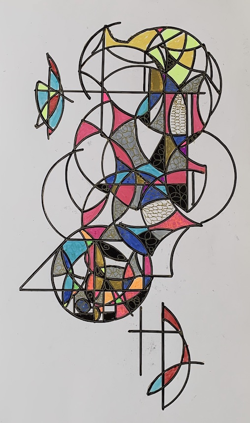 cabinet door with rounded bottom edge and other edges masked for painting