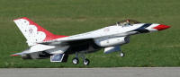 F-16A finished in the "Thunderbirds" colour scheme equipped with the scale landing gear (captured here travelling up just after take off) |