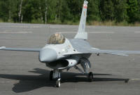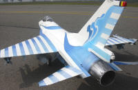 Without a doubt, the F-16 kit is our best engineered kit to date. It is sized and designed for a typical 90 N (20 lbs) class Turbine in the first place, but it will accomodate any turbine from the 50 N (12 lbs) thrust class up to the 135 N (30 lbs) thrust class (when using a speed limiter). The wide speed envelope allows the model to be flown also from smaller (grass) fields. |