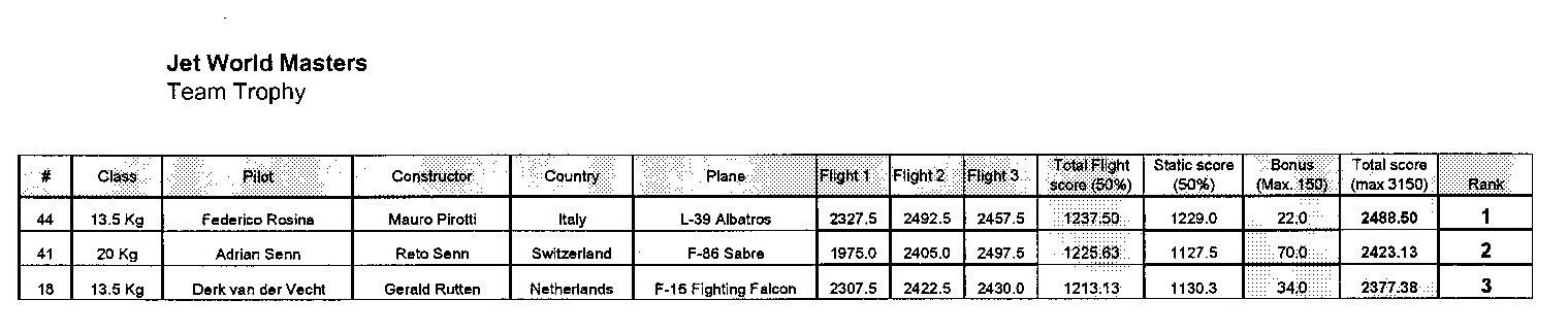 final results 20 kg class video of three top pilots 20 kg class The competition was very well organised by the Swiss. A standard for the future! More info on the competition can be found on their website, with further links to photographs and videos. Other links: Belgian Jet Team facebook page