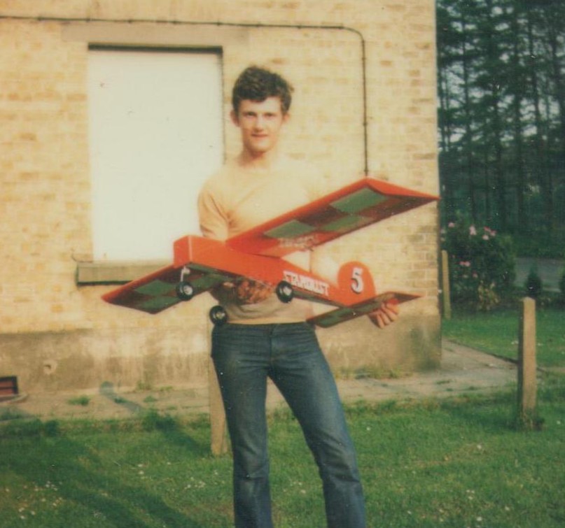 | I build this Robbe Zlin 526 Trener in 1977 from a similar Robbe kit. Nearly 50 years later, I built a new version as can be read here. The transmitter I'm holding is a Mac Gregor Digimac, which I still have in my possession, read here. |