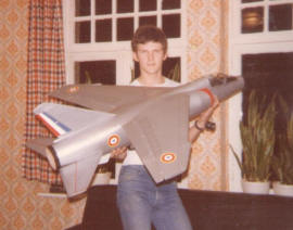 | My very first own design jet, a Mirage F1 with enlarged flying surfaces, enlarged intakes and exhaust to accomodate one of the first commercially available Ducted Fan units, the Midwest Axiflo RK-40 (see below). The Mirage F1 did never fly and was donated to a fellow modeller... |