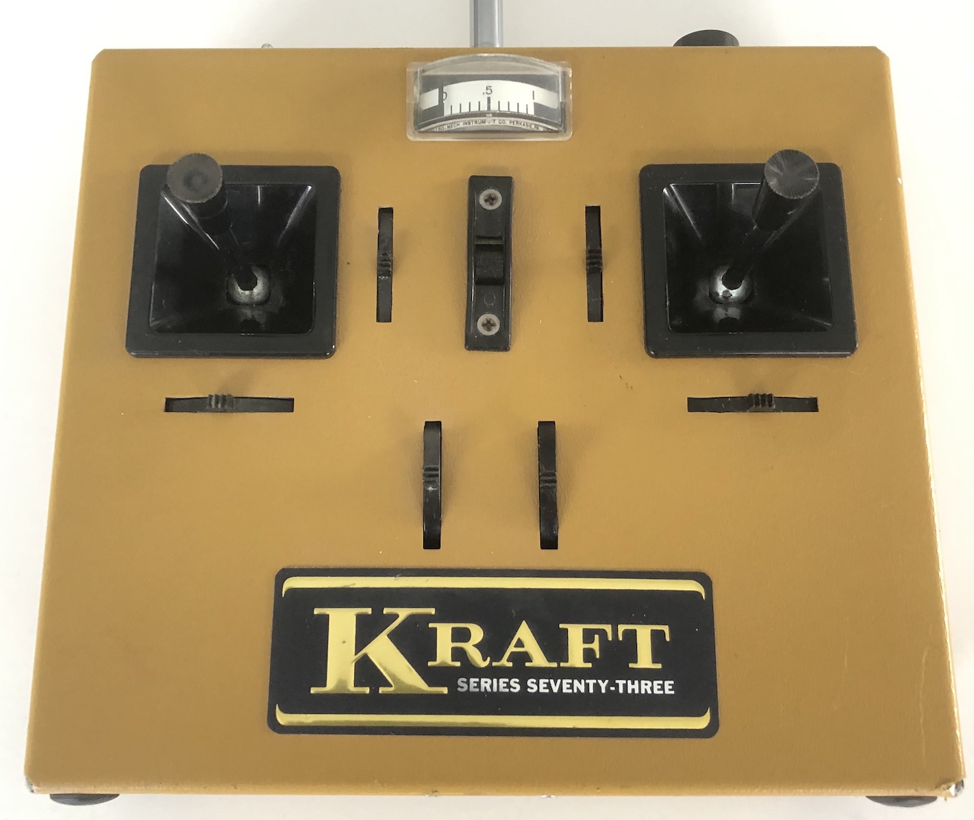 I own three of these transmitters. They were relatively cheap back in the late seventies, being simple 72 MHz AM transmitters. They were good quality, being manufactured by Kraft. I decided to modify this one first as a sort of proof of concept. I learned a lot from the singlechannel.co.uk and mode-zero.uk websites and used the 7 ch encoder software (sketch) published on those sites, courtesy Phil Green. This software allows the radio to be used as a single channel radio with just one push button, while retaining the full proportional 6 channel capability with a switched 7th channel as a bonus. It features dual rates, exponential, servo reversing, range checking mode and a very convenient timer. This transmitter was the first to be modified and that's why it has all the whistles and bells as provided by Phil's software. It has a receptacle for a modified Futaba TM-7 module, so it can work with a selection of Futaba Fasst receivers. A 2S LiPo provides the power. The transmitter is operational but has not been flight tested yet.