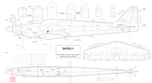 1. Some background The Sicroly is an RC1 pattern model airplane designed around 1970 by Hans and Hanno Prettner. This was way before Hanno started accumulating his Word Champion title successes, so it is not as well known as his later models. The Sicroly is the predecessor of the Super Sicroly with which Hanno participated at the 1971 and 1973 World Championships. His first win was with the well known Curare in 1977. Later he would win more titles: 1981 with Magic, 1983 with Calypso, 1985 with Supra Fly, both 1987 and 1989 with Supra Star and finally in 1993 with Mystic 60. Hanno Prettner has inspired generations of RC builders and pilots and still does today. His more popular designs are shown below. Super Sicroly (1971-1973), Curare (1975-1977), Magic (1981) and Calypso (1983) Supra Fly (1985), Supra Star with Ayrton Senna (1987-1989) and Mystic 60 (1993) The Sicroly is indeed much less known. I first came accross a photo of the Sicroly in an advert for a kit of Radu Balea's remake model which has a slightly altered shape (in the first place to facilitate fitting retracts). The box lid showed a picture of Hanno's original and that stirred my curiosity. A search on the internet didn't reveal a lot, so I contacted both Radu and Hanno to know if any more photographs or drawings did exist. Both gentlemen kindly sent me some information on the background of the model, but unfortunately, no drawings had been preserved. I did learn however that the Sicroly was the follow up design of the Acroly and Wicroly from the second half of the sixties. Hans and Hanno with the original Acroly Hanno with the Wicroly and some early trophies (circa 1967)