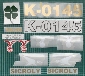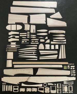 2 view drawing with my interpration of the Sicroly At time of writing (early February 2026), the construction drawings have well progressed (see sample below). The drawings of all the balsa and plywood parts have been converted in usable files for CNC cutting which is now also complete (see photos below). It's now a matter of assembling the kit I made for myself. I want to emphasize that I do not intend to commercialize the kit. It is a pure retro fun project as a tribute to Hanno Prettner. As soon as there is more progress on the project, this page will be updated.