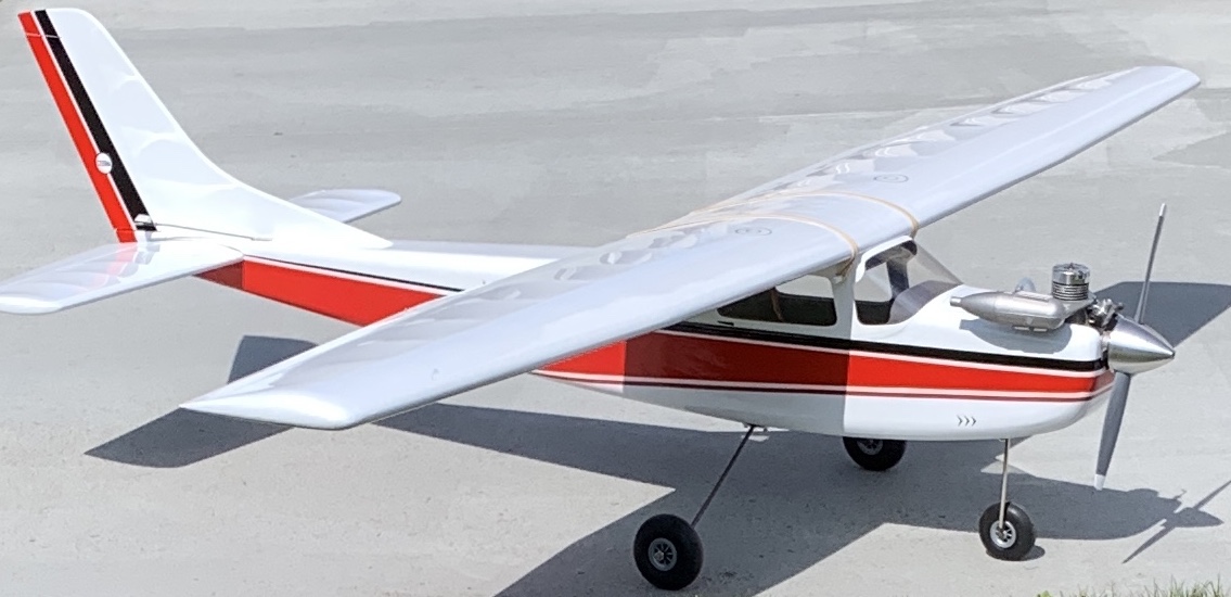 Built in 2022 from the vintage but excellent Carl Goldberg kit. The plan alone is a fantastic source of inspiration for building and finishing techniques. Although all parts are old fashioned die cut, the fit is exceptional. My hat off to such a beautiful and well thought out design! The designer managed to create an excellent trainer model with refined scale looks. It is definitely sleeker and in my opinion better looking than a true to scale Cessna Skylane. I thoroughly enjoyed building this vintage kit. The kit is no longer available. Luckily, I still have a second untouched kit in my collection and the plan is still available from outerzone. I finished the model in 2024 in the original boxtop scheme with Oracover film and some paint around the cockpit windows. The decals were too old and yellowed, so I printed my own. Power is an OS MAX 28 FSR engine with a Graupner nylon propeller and a Tru-Turn aluminium spinner. The 28 FSR is not so well known. It's a slightly larger version of the once very popular 25 FSR which I also have in my engine collection. I stayed loyal to the design of the kit but I did reduce the dihedral on the wing and did not install the (non functional) wing struts. The model has now made several flights. It's a very docile trainer. Some photographs below. All in flight shots by Michel Avonds.