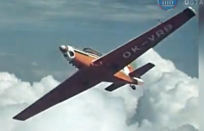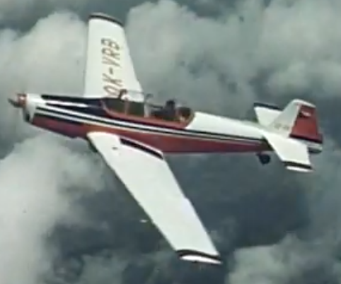 main components framed up The plastic of the engine cowl was still in remarkably good shape, but I didn’t like the exaggerated panel lines and the indentations showing the location of the hole for the silencer, so I decided to fill all of these and finish the cowl as a plug from which to make moulds for an epoxy fiberglass cowl. I don’t know which clear plastic was used for the canopy but it is very brittle. Not from age, because as far as I recall, it cracked easily on my first build attempt so many years ago. So again this time, very careful cutting and trimming was needed. Cockpit interior detail is sparse as intended by the designer, so I didn’t want to change that to preserve the retro look from this semi scale model. simple cockpit interior as intended by the kit manufacturer The box cover shows a fantasy impression of the full size OK-VRB, while the catalog photos show more authentic versions. I found very little on the full size but in this 1967 film “Skies for the Trener” (can be found on youtube), the original OK-VRB is featured in some flying scenes. A few screenshots allowed me to replicate the OK-VRB scheme in a decent manner although it was far from my intention to make a detailed scale model.